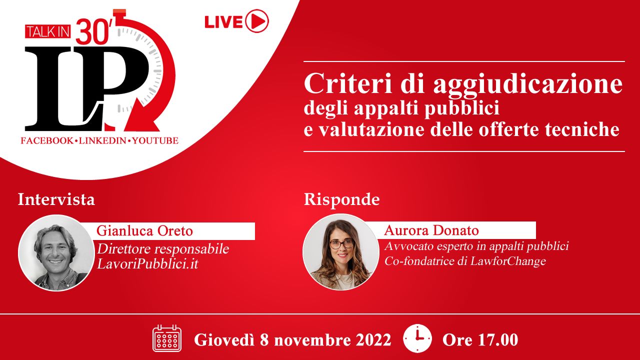 L'Avv. Aurora Donato ha parlato di criteri di aggiudicazione degli appalti pubblici e valutazione delle offerte tecniche in questo "talk" organizzato da Lavori Pubblici. Read more
